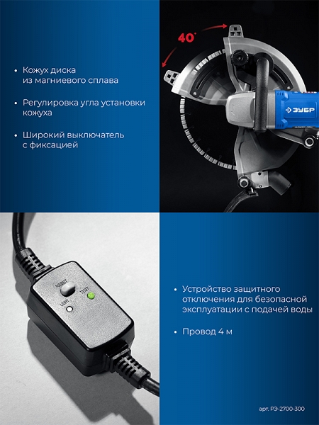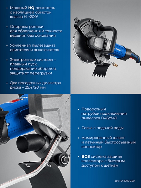 Преимущества электрического резчика по бетону Зубр Профессионал РЭ-2700-300: