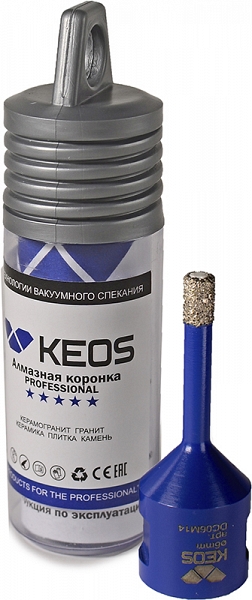 Цена и технические характеристики коронки алмазной по керамограниту Keos Professional Vacuum Brazed M14 6 мм: