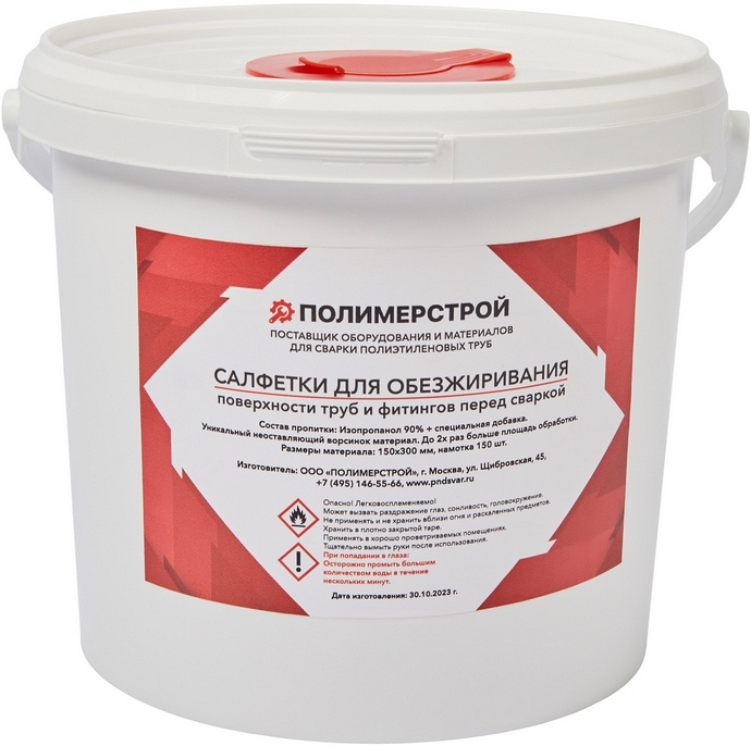 Салфетки для обезжиривания ПЭ труб и фитингов перед сваркой Gas Fusion, 150 шт. (Газ Фьюжин, 150 шт.) с содержанием изопропанола 95% применяют для обезжиривания поверхности фитингов и ПНД труб перед раструбной муфтовой и электромуфтовой сваркой для удаления загрязнений, которые снижают прочность стыка, при монтаже коммуникаций.