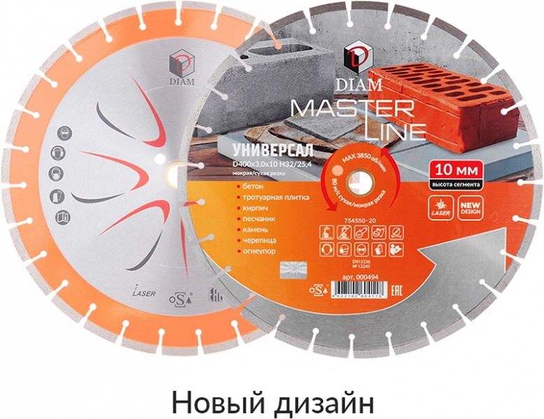 Сегментный алмазный круг Diam Master Line 1A1RSS Универсал 400 мм (Диам Мастер Лайн 1А1РСС Универсал 400 мм) – специальный алмазный отрезной диск с лазерной сваркой сегментов для сухой и мокрой резки бетона, тротуарной плитки, кирпича, черепицы, песчаника, природного и искусственного камня, строительных материалов общего назначения на бензорезах, электрических резчиках, камнерезных станках, стенорезных машинах, швонарезчиках, с подачей и без подачи воды.