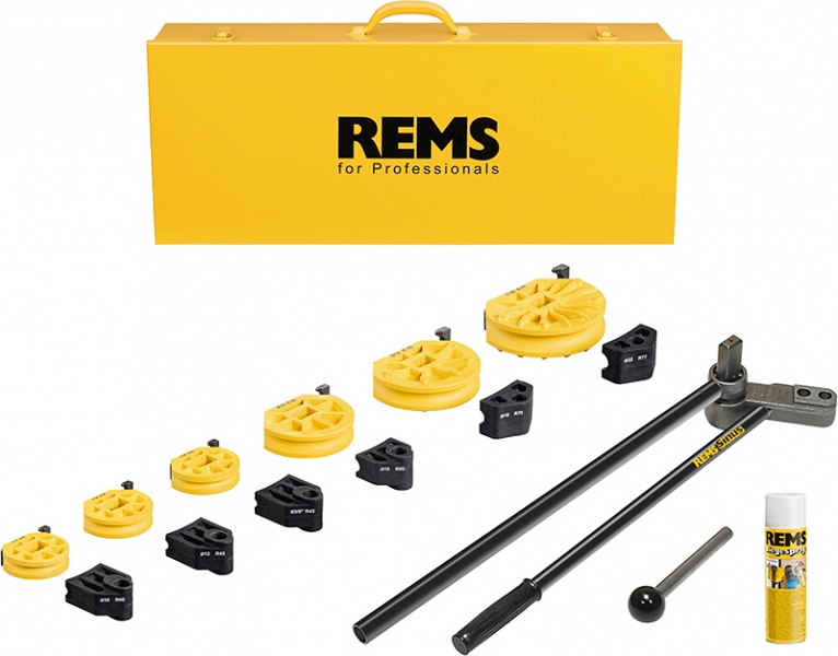 - Rems Синус Сет 10-12-14-16-18-22 мм (поставляется с соответственно меньшим радиусом гибочных сегментов и упоров). Ручной трубогиб Ø 10 – 32 мм, 3/8" – 7/8", до 180°. Для твердых, полутвердых, мягких медных, а также тонкостенных труб Ø 10 – 22 мм, 3/8" – 7/8"; мягких медных труб в оболочке, также и тонкостенных Ø 10 – 18 мм; труб систем прессфитинга из нержавеющей стали Ø 12 – 18 мм; мягких труб из прецизионной стали Ø 12 – 22 мм; прецизионных мягких стальных труб Ø 10 – 20 мм; электроизоляционных труб по EN 50086 Ø 16 – 20 мм; металлопластиковых труб Ø 14 – 32 мм, и других. Привод, вставной стержень. Гибочные сегменты и упоры 10, 12, 14, 16, 18, 22 мм. Аэрозоль для гибки труб. В прочном стальном чемодане с вкладышем.