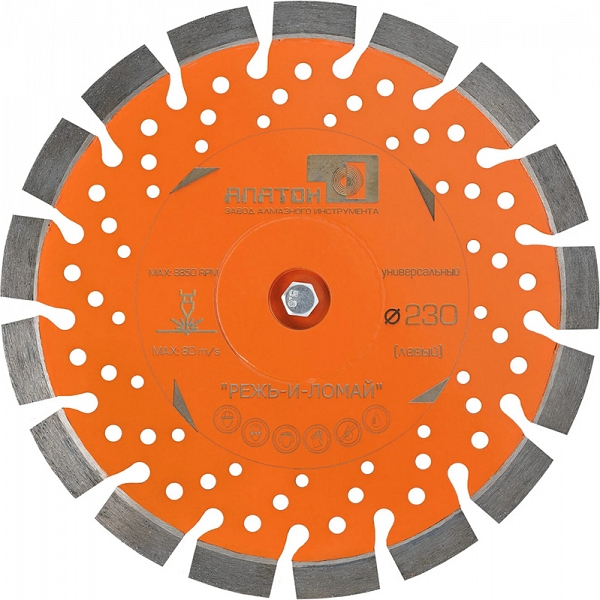 - Левый универсальный алмазный диск Алатон Режь-и-Ломай 230 мм