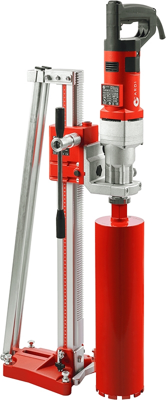 Установка алмазного бурения Cardi 185 (Карди 185) предназначена для сверления всухую и с подачей воды, вручную и с применением станины, под прямым углом и под углом до 45° отверстий в бетоне, железобетоне и кирпиче Ø 32 – 202 мм.