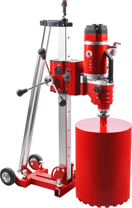 Установка алмазного бурения Cardi 606 (Карди 606) предназначена для сверления отверстий в бетоне, железобетоне Ø 120 – 600 мм, под углом 0° – 75°, с подачей воды.